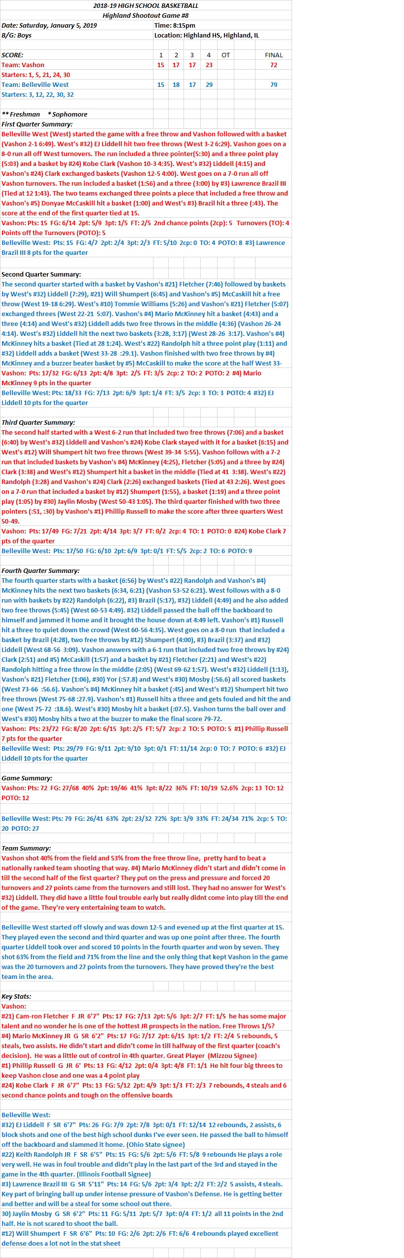 HSBB Highland Shootout Game #8 at Highland HS in Highland IL 01/05/19 Belleville West 79 vs Vashon 72 Final Share this: Click to share on X (Opens in new window) X Click to share on Facebook (Opens in new window) Facebook Like Loading...