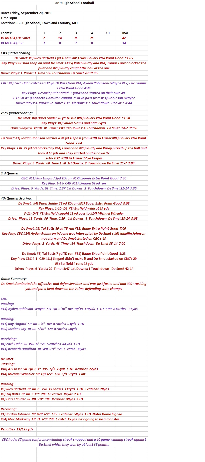 High School Football: De Smet 42 dominates CBC 14 on the road on ESPNU. Share this: Click to share on X (Opens in new window) X Click to share on Facebook (Opens in new window) Facebook Like Loading...