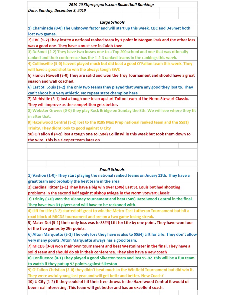 Stlprepsports.com High School Basketball Rankings I 12/08/19 Share this: Click to share on X (Opens in new window) X Click to share on Facebook (Opens in new window) Facebook Like Loading...