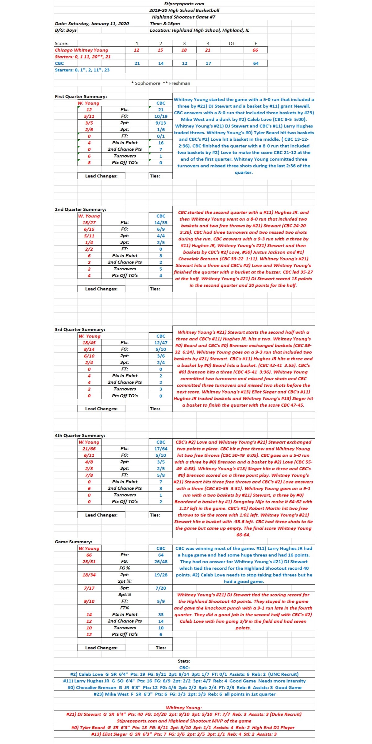 HSBB Boys Highland Shootout 01/11/20 Game #8 Whitney Young 66 vs CBC 64 Final: Whitney Young’s #21) DJ Stewart exploded for 40 points Share this: Click to share on X (Opens in new window) X Click to share on Facebook (Opens in new window) Facebook Like Loading...