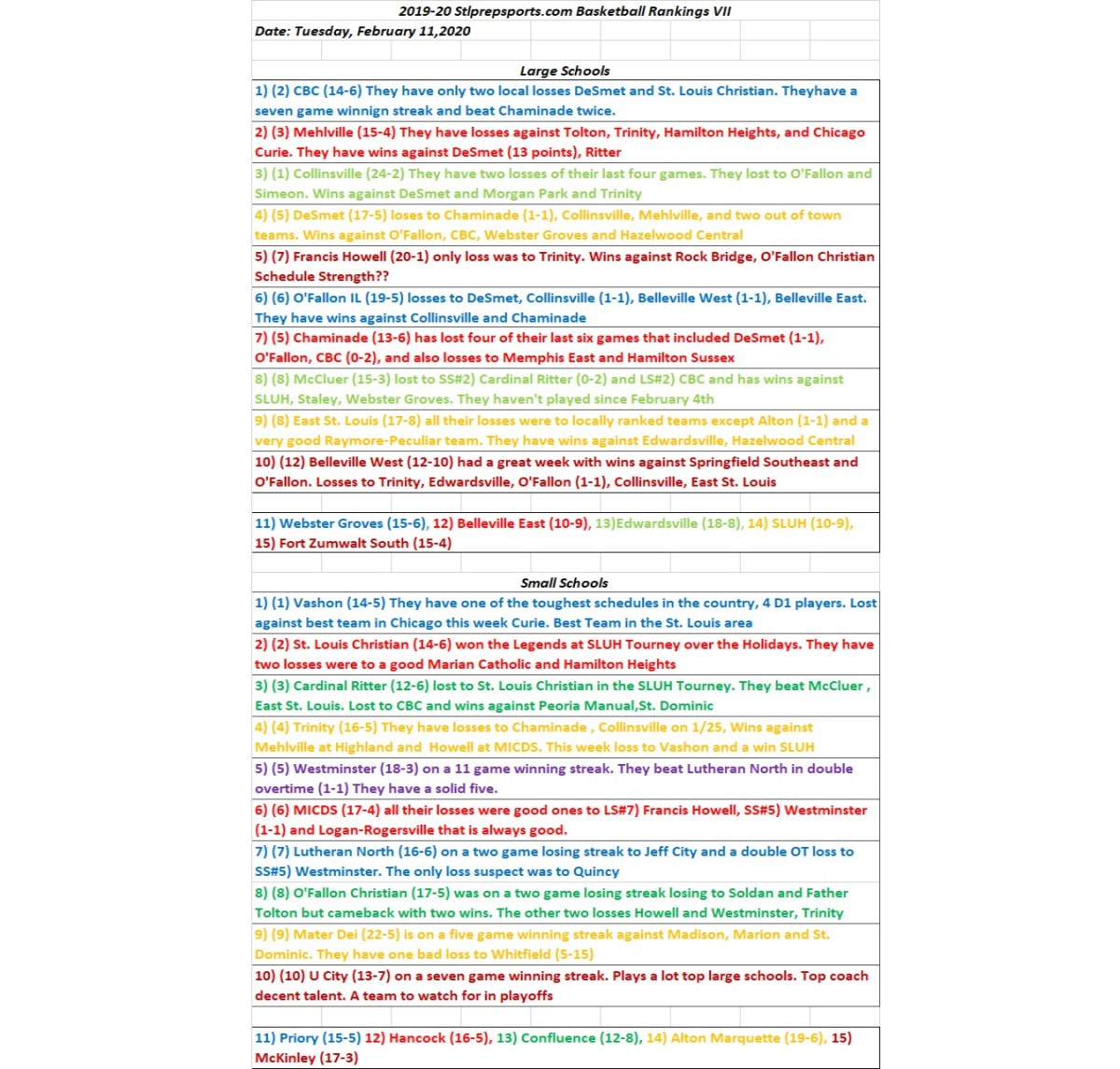 Stlprepsports.com High School Basketball Rankings VII 02/11/20 Share this: Click to share on X (Opens in new window) X Click to share on Facebook (Opens in new window) Facebook Like Loading...