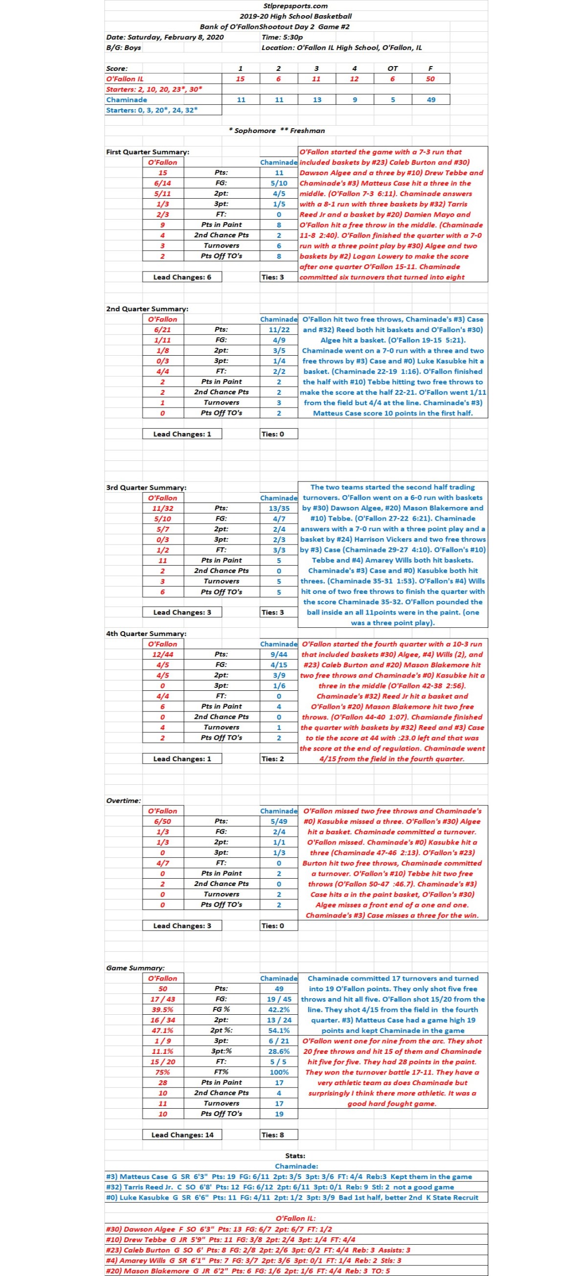 HSBB Boys 02/08/20 Bank of O’Fallon Shootout Day 2 Game #2 Chaminade 49 at O’Fallon IL 50 Final OT: Battle of two Top 10 Large Schools in area and O’Fallon edges Chaminade Share this: Click to share on X (Opens in new window) X Click to share on Facebook (Opens in new window) Facebook Like Loading...