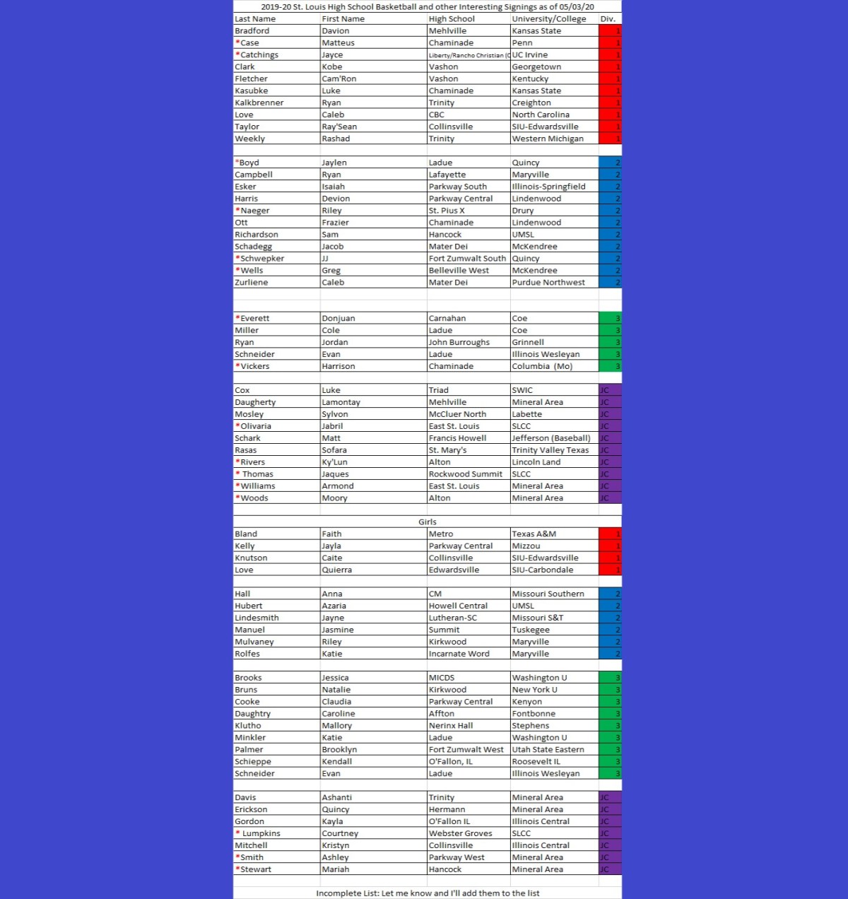 HSBB St. Louis Metro Basketball College Signings as of 05/03/2020 Share this: Click to share on X (Opens in new window) X Click to share on Facebook (Opens in new window) Facebook Like Loading...