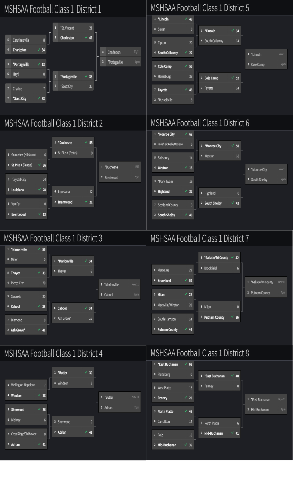 Stlprepsports.com MSHSAA Class 1 Football Districts 11/6/22 Share this: Click to share on X (Opens in new window) X Click to share on Facebook (Opens in new window) Facebook Like Loading...