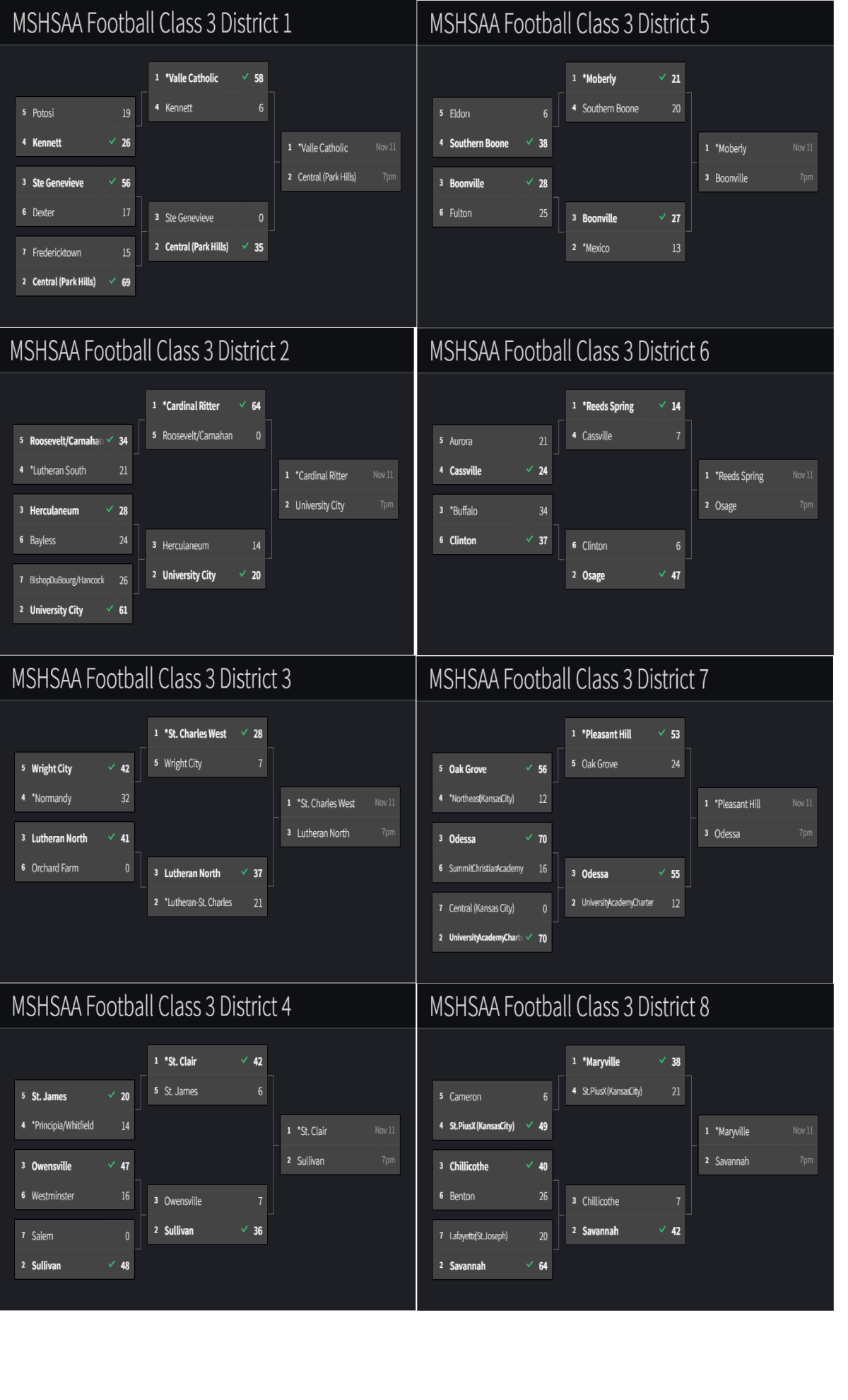 Stlprepsports.com MSHSAA Class 3 Football Districts 11/6/22 Share this: Click to share on X (Opens in new window) X Click to share on Facebook (Opens in new window) Facebook Like Loading...