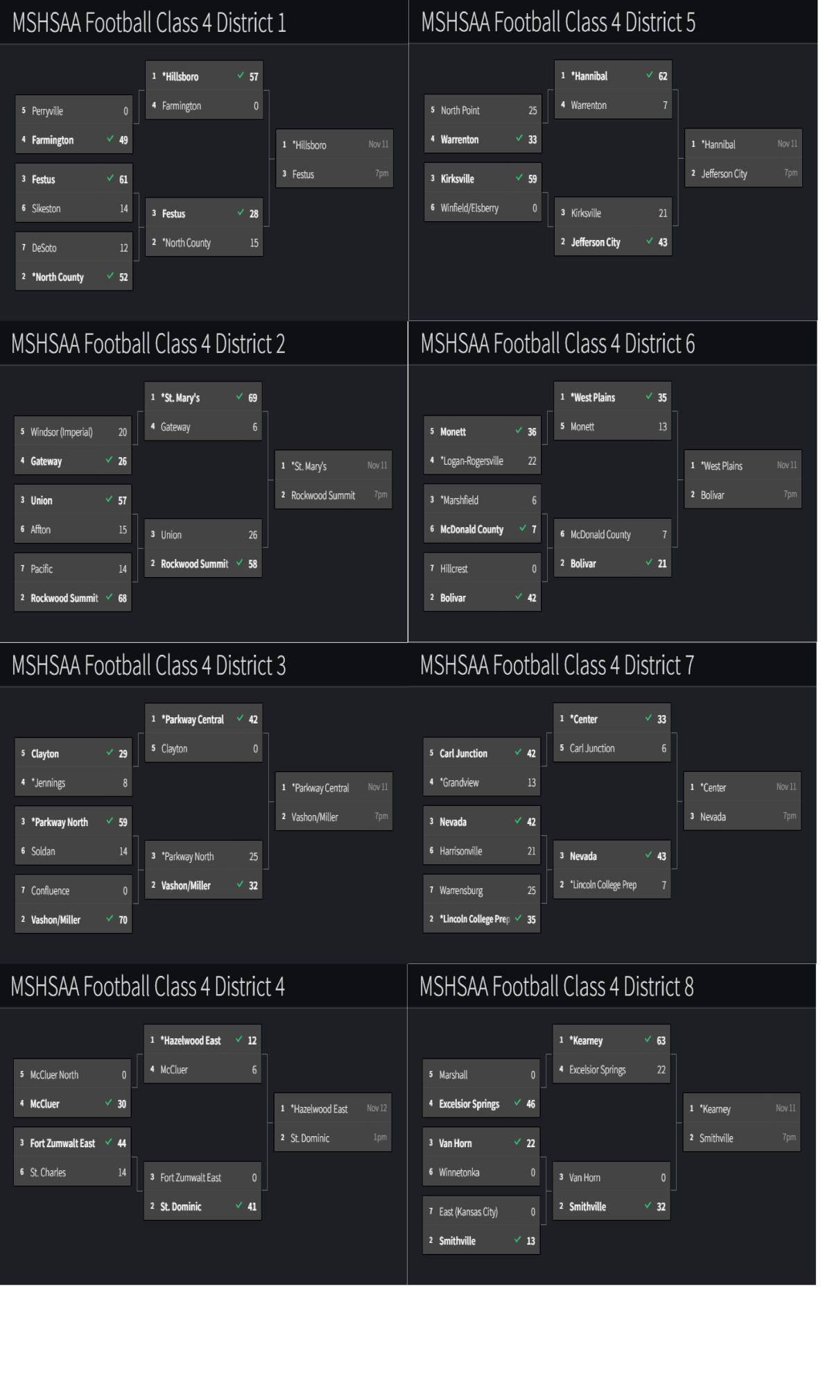 Stlprepsports.com MSHSAA Class 4 Football Districts 11/06/22 Share this: Click to share on X (Opens in new window) X Click to share on Facebook (Opens in new window) Facebook Like Loading...