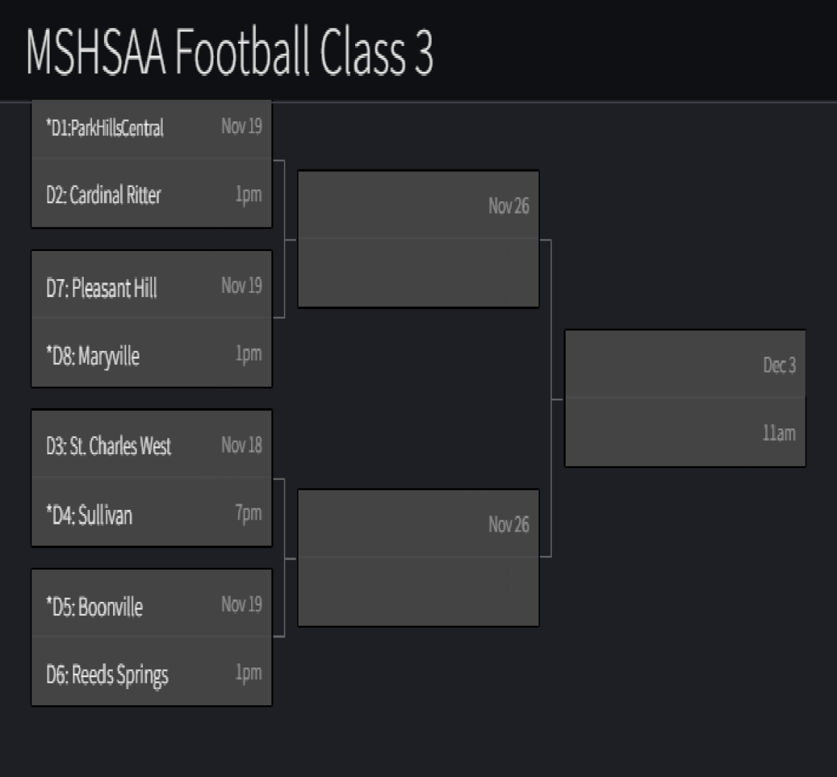 Stlprepsports.com MSHSAA Football Class 3 Quarterfinals 2022 Share this: Click to share on X (Opens in new window) X Click to share on Facebook (Opens in new window) Facebook Like Loading...