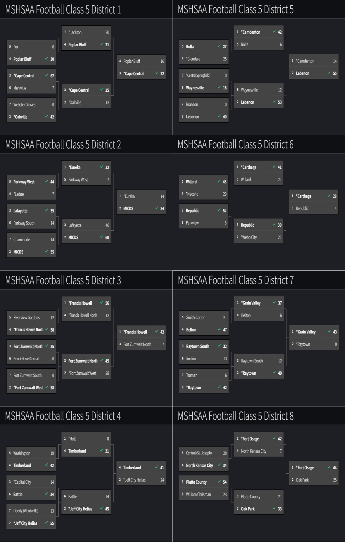 Stlprepsports.com MSHSAA Football Class 5 Districts 11-13-22 Share this: Click to share on X (Opens in new window) X Click to share on Facebook (Opens in new window) Facebook Like Loading...