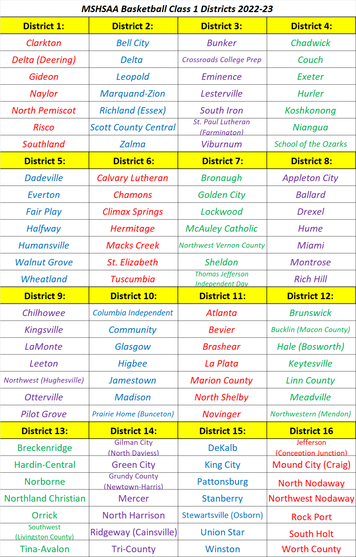 Stlprepsports.com MSHSAA Basketball Class 1 Districts 2022-23 Share this: Click to share on X (Opens in new window) X Click to share on Facebook (Opens in new window) Facebook Like Loading...