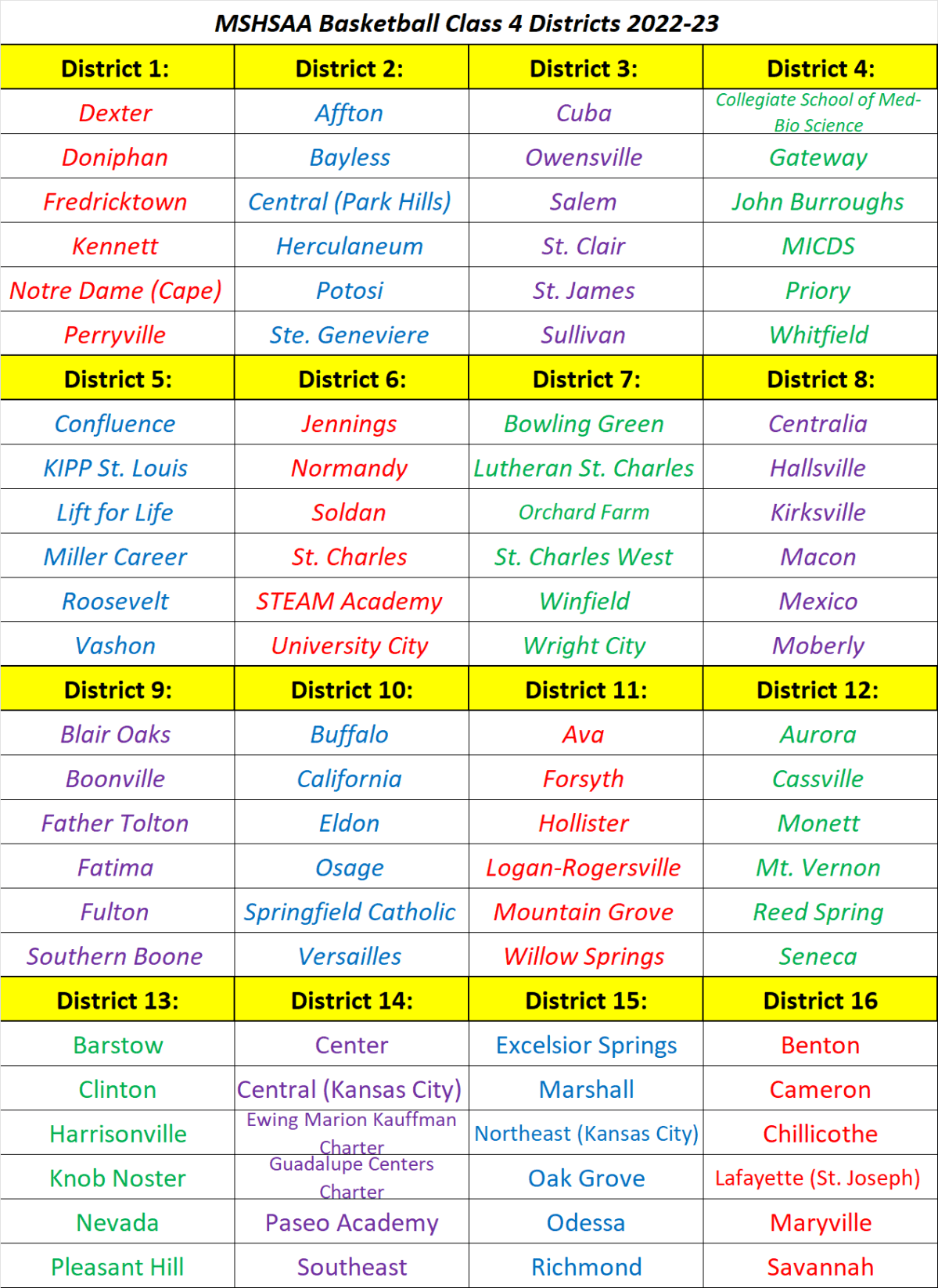 Stlprepsports.com MSHSAA Basketball Class 4 Districts 2022-23 Share this: Click to share on X (Opens in new window) X Click to share on Facebook (Opens in new window) Facebook Like Loading...