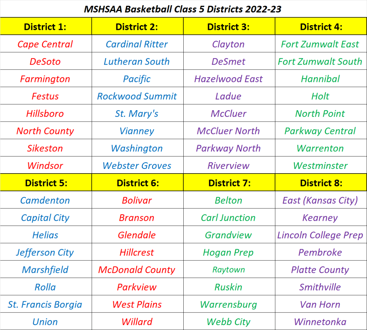 Stlprepsports.com MSHSAA Basketball Class 5 Districts 2022-23 Share this: Click to share on X (Opens in new window) X Click to share on Facebook (Opens in new window) Facebook Like Loading...