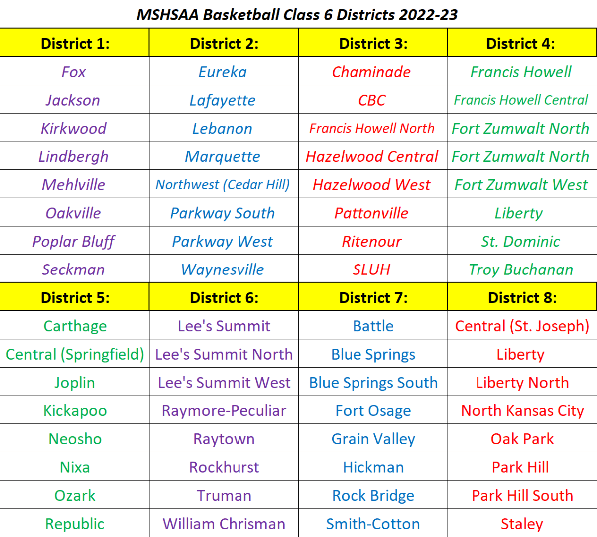 Stlprepsports.com MSHSAA Basketball Class 6 Districts 2022-23 Share this: Click to share on X (Opens in new window) X Click to share on Facebook (Opens in new window) Facebook Like Loading...
