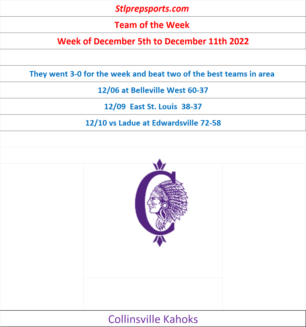 Stlprepsports.com: St. Louis Area High School Basketball Team of the Week of 12/5 to 12/11/22 Share this: Click to share on X (Opens in new window) X Click to share on Facebook (Opens in new window) Facebook Like Loading...