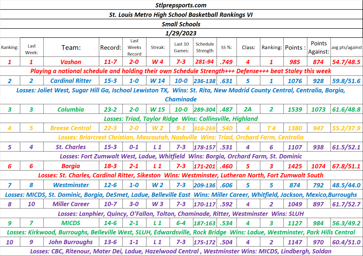 Stlprepsports.com Small Schools St. Louis Metro Area High School Basketball Rankings 01/29/2023 Share this: Click to share on X (Opens in new window) X Click to share on Facebook (Opens in new window) Facebook Like Loading...