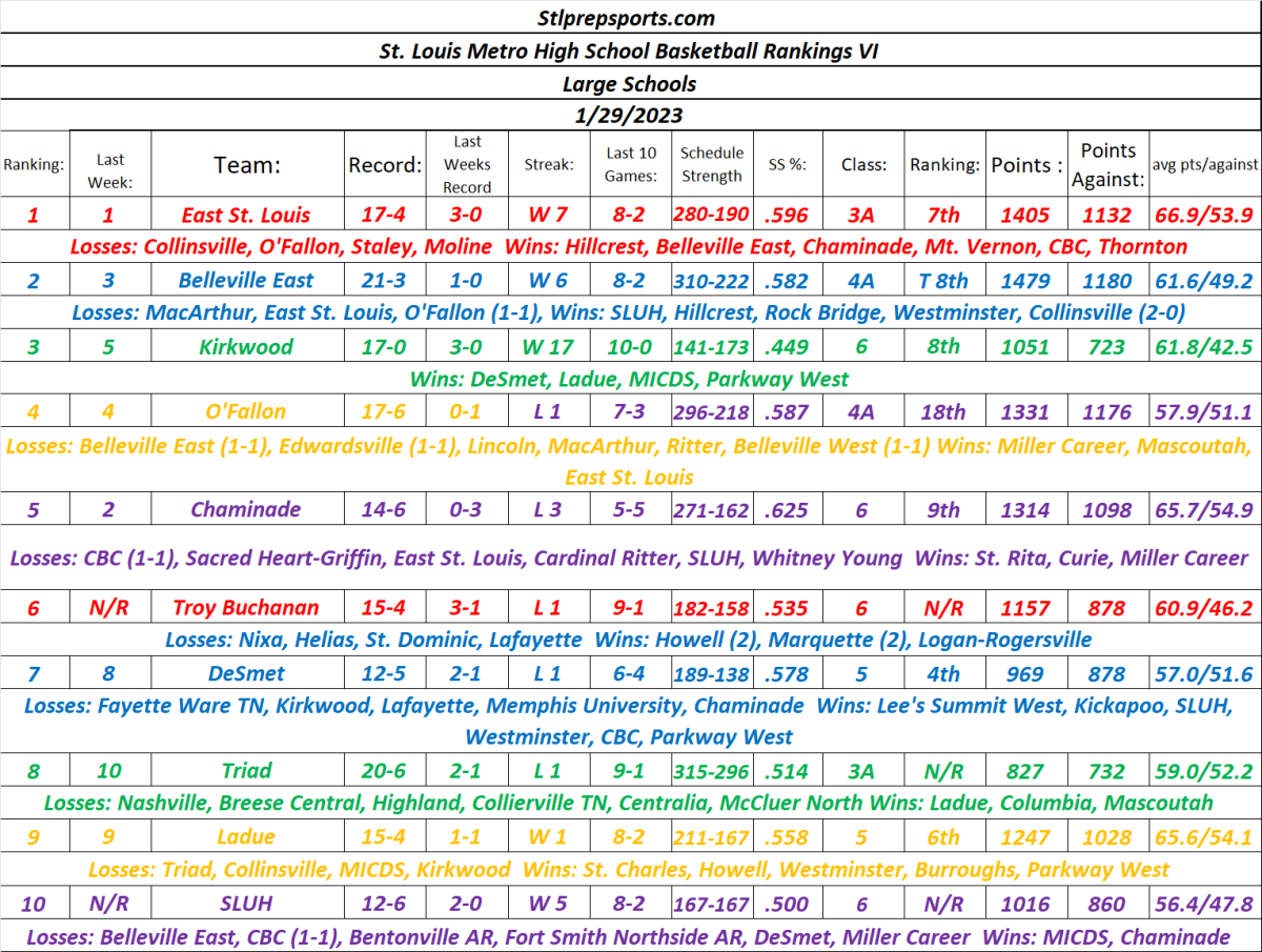 Stlprepsports.com Large Schools St. Louis Metro Area High School Basketball Rankings 01/29/2023 Share this: Click to share on X (Opens in new window) X Click to share on Facebook (Opens in new window) Facebook Like Loading...