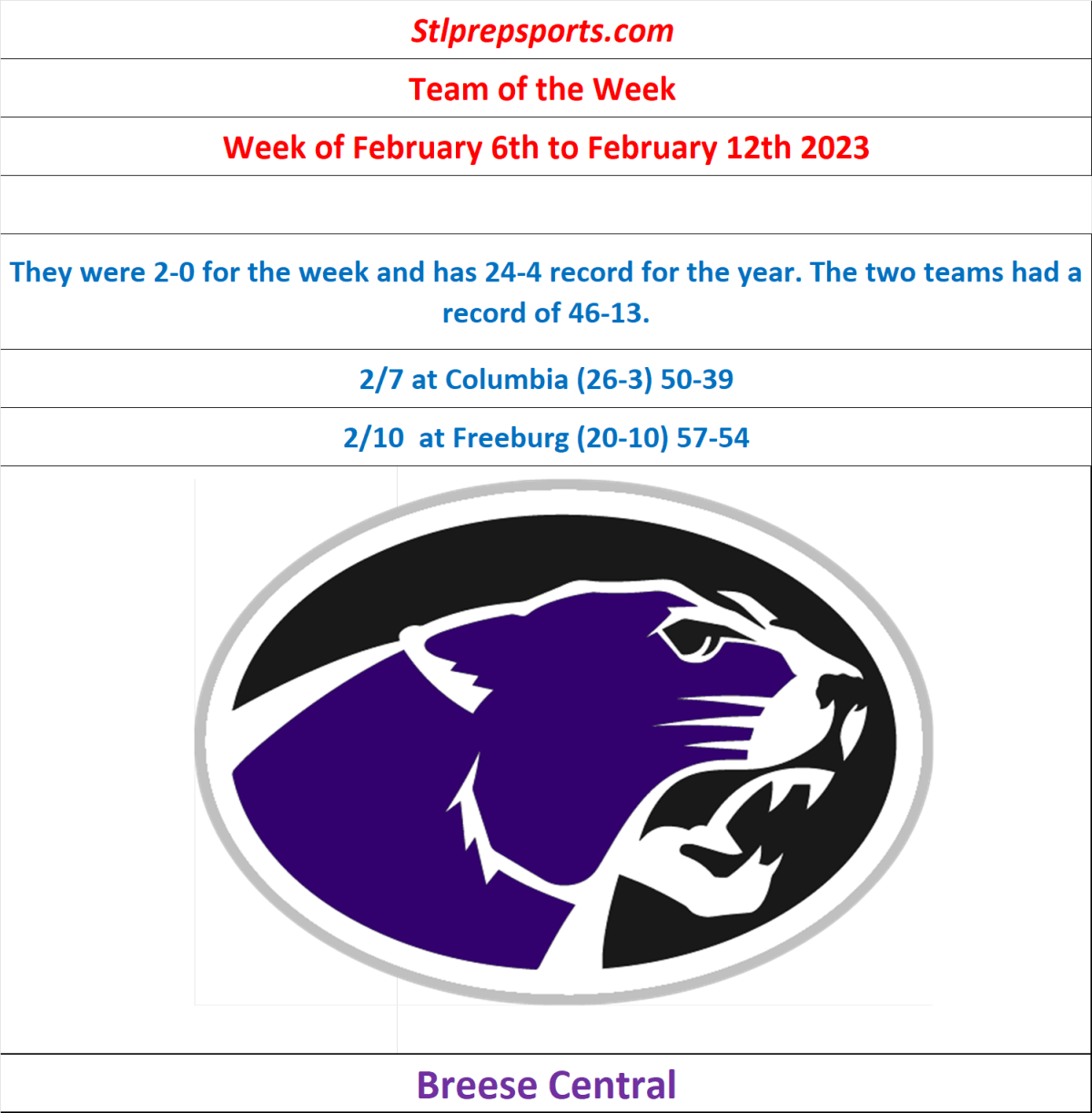 Stlprepsports.com St. Louis Area High School Basketball Team of the Week of 2/06 to 2/12/23 Share this: Click to share on X (Opens in new window) X Click to share on Facebook (Opens in new window) Facebook Like Loading...