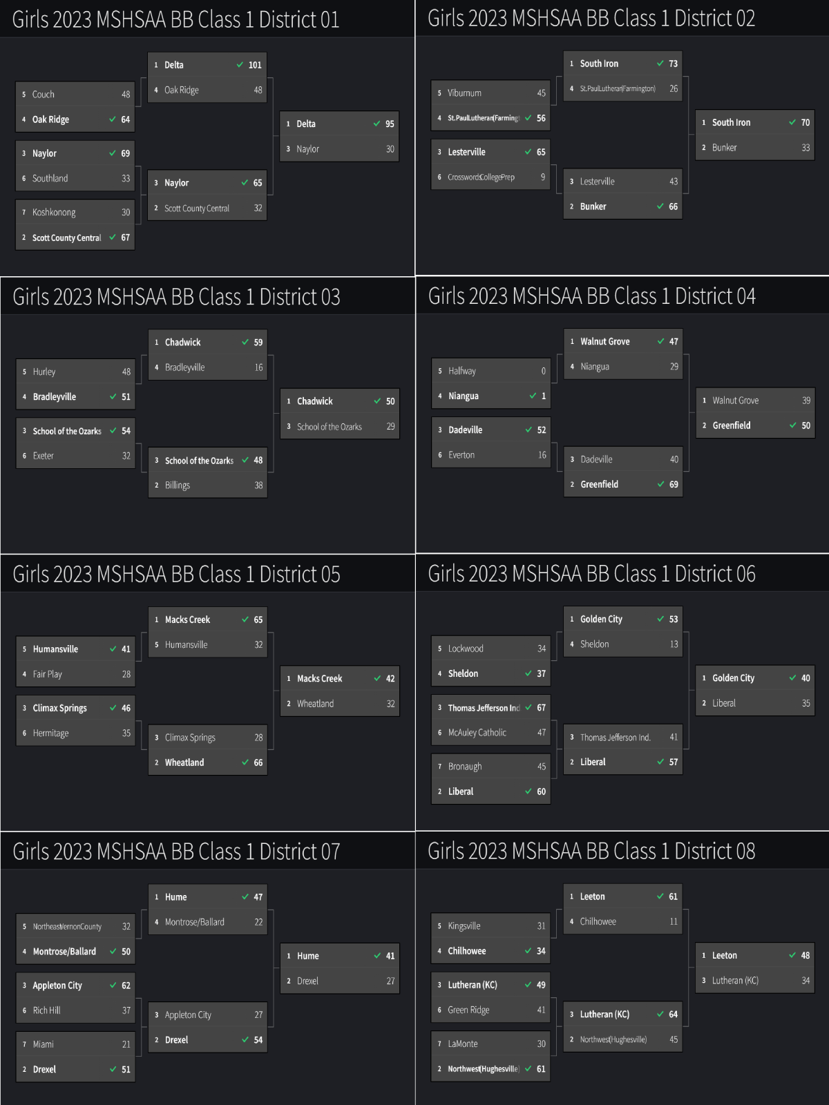 Stlprepsports.com 2022-23 MSHSAA Girls Basketball Class 1 Districts 1-8 Final Share this: Click to share on X (Opens in new window) X Click to share on Facebook (Opens in new window) Facebook Like Loading...