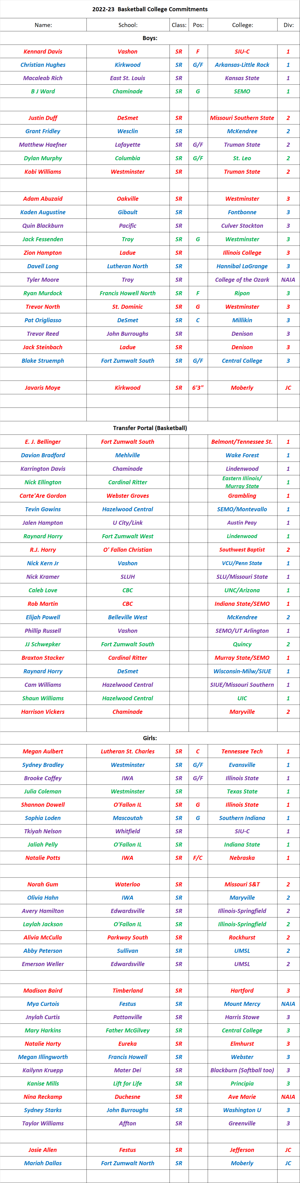 Stlprepsports.com 2023 Basketball’s College Commitments and Transfer Portal Share this: Click to share on X (Opens in new window) X Click to share on Facebook (Opens in new window) Facebook Like Loading...