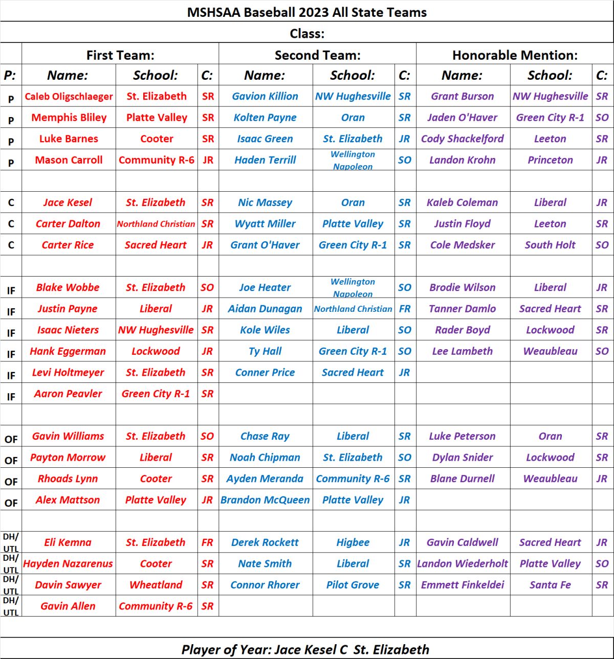 Stlprepsports.com 2023 MSHSAA Class 1 All State Baseball Team Share this: Click to share on X (Opens in new window) X Click to share on Facebook (Opens in new window) Facebook Like Loading...