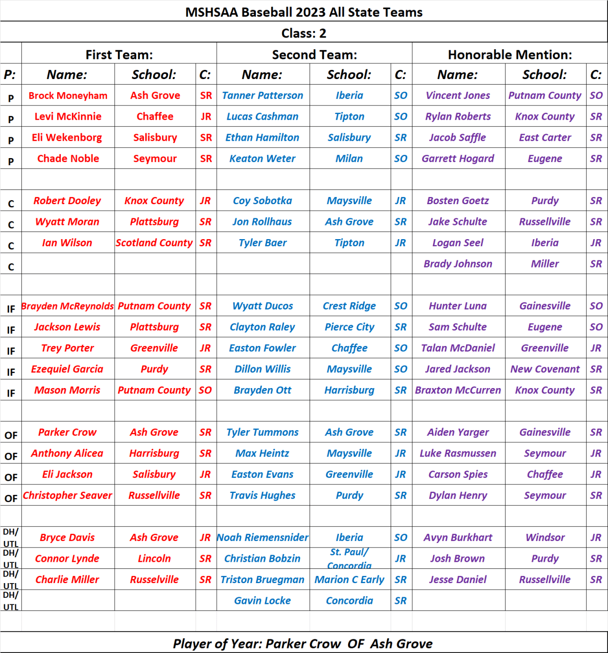 Stlprepsports.com 2023 MSHSAA Class 2 All State Baseball Team Share this: Click to share on X (Opens in new window) X Click to share on Facebook (Opens in new window) Facebook Like Loading...