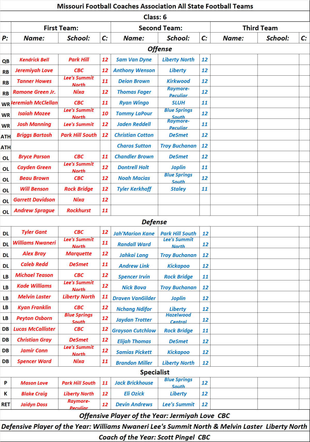 Stlprepsports.com 2022 Missouri Class 6 All State Football Team Share this: Click to share on X (Opens in new window) X Click to share on Facebook (Opens in new window) Facebook Like Loading...