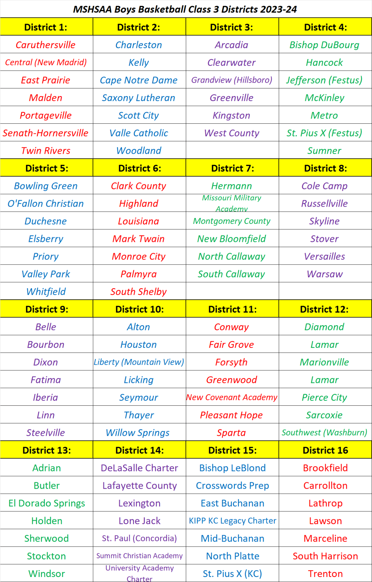 Stlprepsports.com 2023-24 MSHSAA Boys Basketball Class 3 Districts Share this: Click to share on X (Opens in new window) X Click to share on Facebook (Opens in new window) Facebook Like Loading...