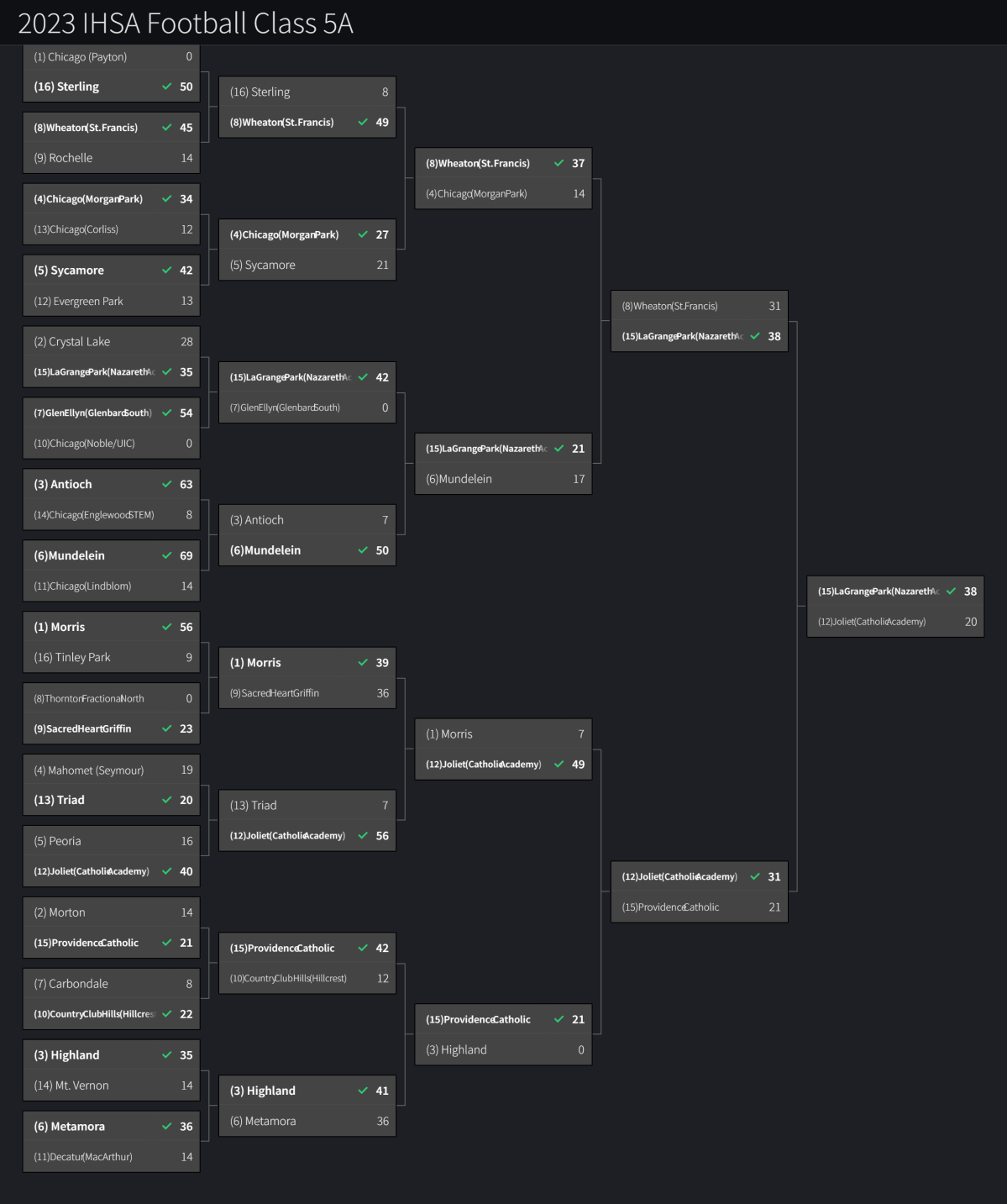Stlprepsports.com 2023 IHSA Football Class 5A Final Results Share this: Click to share on X (Opens in new window) X Click to share on Facebook (Opens in new window) Facebook Like Loading...