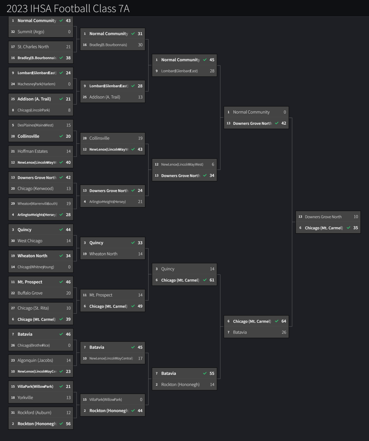 Stlprepsports.com 2023 IHSA Football Class 7A Final Results Share this: Click to share on X (Opens in new window) X Click to share on Facebook (Opens in new window) Facebook Like Loading...