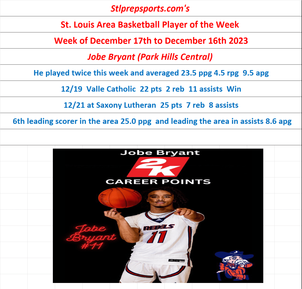 Stlprepsports.com’s St. Louis Area High School Basketball Player of the Week December 17th- December 23rd, 2023 Share this: Click to share on X (Opens in new window) X Click to share on Facebook (Opens in new window) Facebook Like Loading...