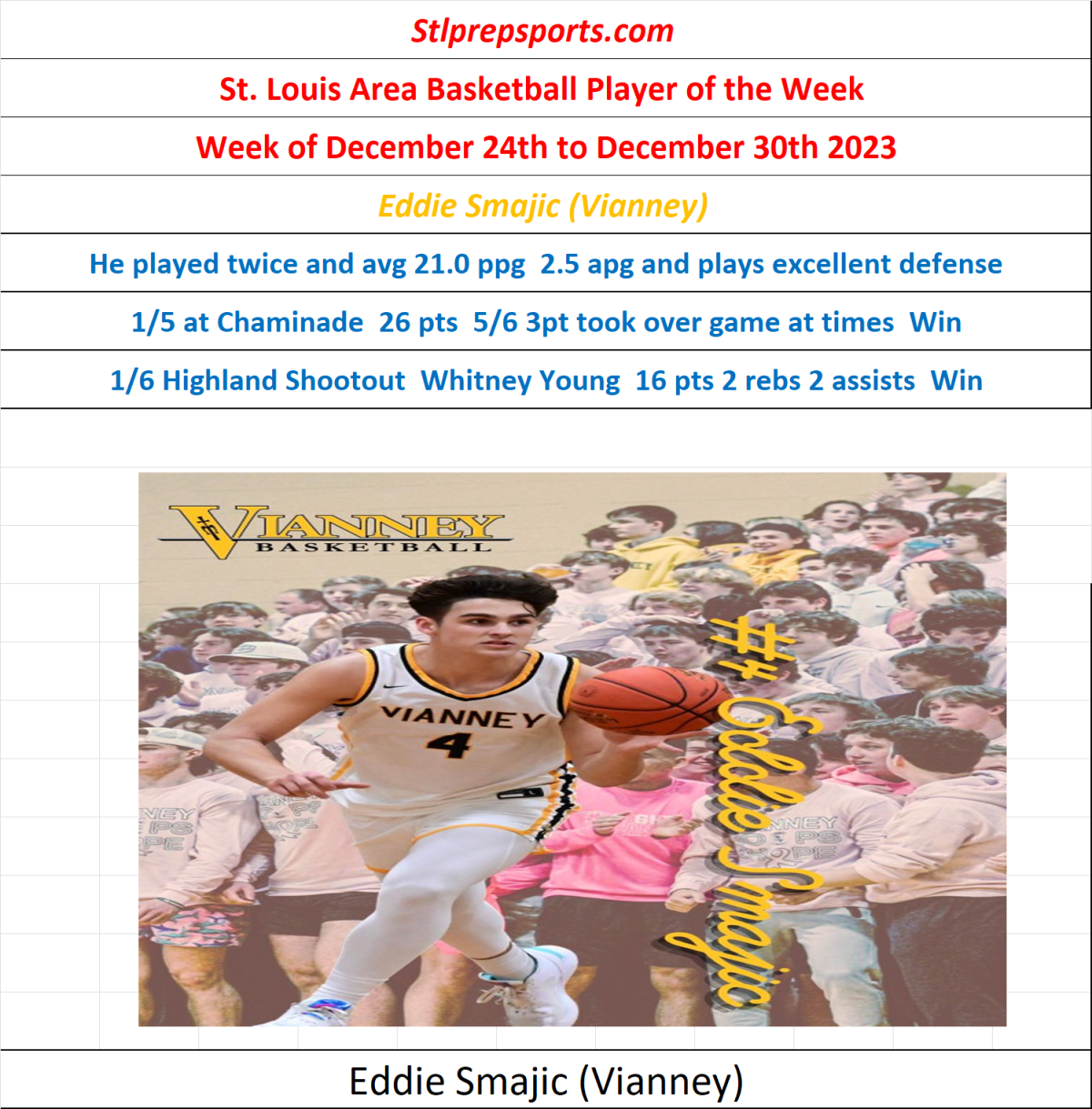 Stlprepsports.com’s St. Louis Area High School Basketball Player of the Week December 31st, 2023- January 6th, 2024 Share this: Click to share on X (Opens in new window) X Click to share on Facebook (Opens in new window) Facebook Like Loading...
