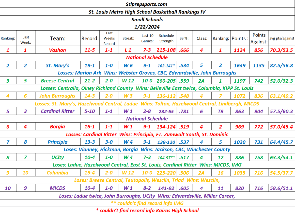 Stlprepsports.com’s 2023-24 St. Louis Metro Area Small Schools Basketball Rankings IV 01/22/24 Share this: Click to share on X (Opens in new window) X Click to share on Facebook (Opens in new window) Facebook Like Loading...