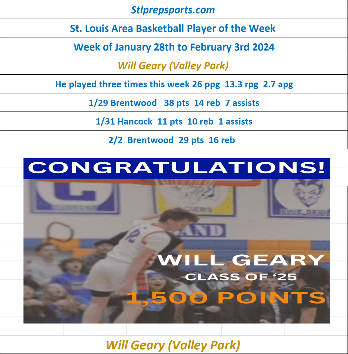 Stlprepsports.com’s St. Louis Area High School Basketball Player of the Week January 28th to February 3rd, 2024 Share this: Click to share on X (Opens in new window) X Click to share on Facebook (Opens in new window) Facebook Like Loading...