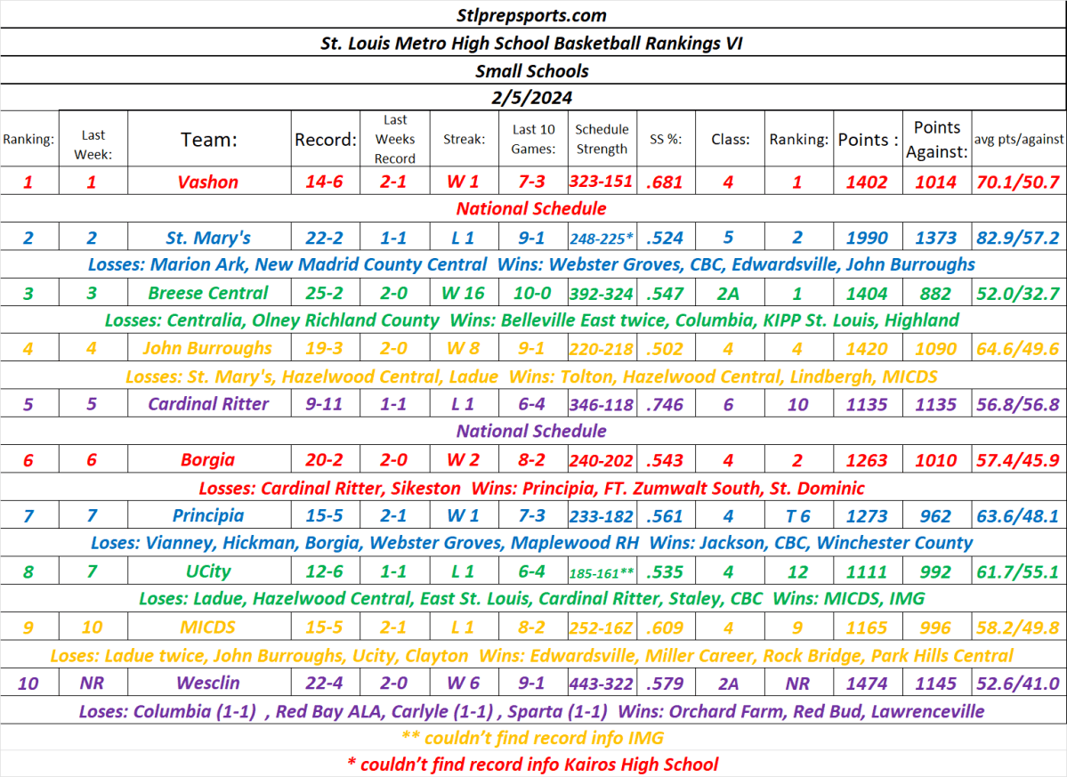 Stlprepsports.com’s 2023-24 St. Louis Metro Area Small Schools Basketball Rankings VI 02/05/24 Share this: Click to share on X (Opens in new window) X Click to share on Facebook (Opens in new window) Facebook Like Loading...