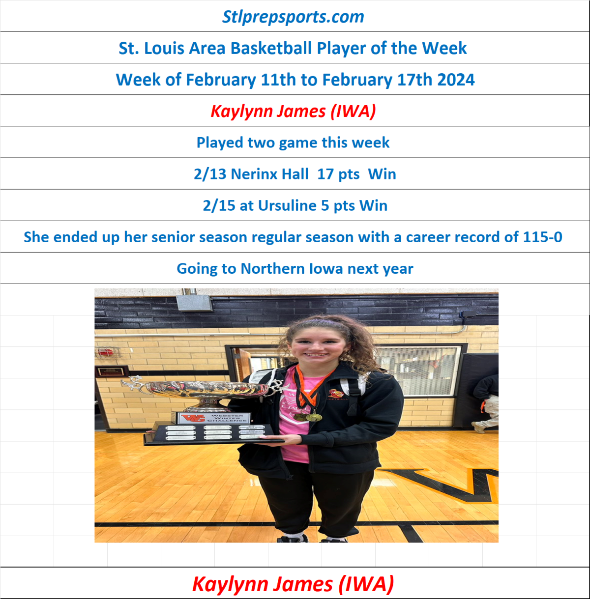 Stlprepsports.com’s St. Louis Area High School Basketball Player of the Week February 11th to February 17th, 2024 Share this: Click to share on X (Opens in new window) X Click to share on Facebook (Opens in new window) Facebook Like Loading...