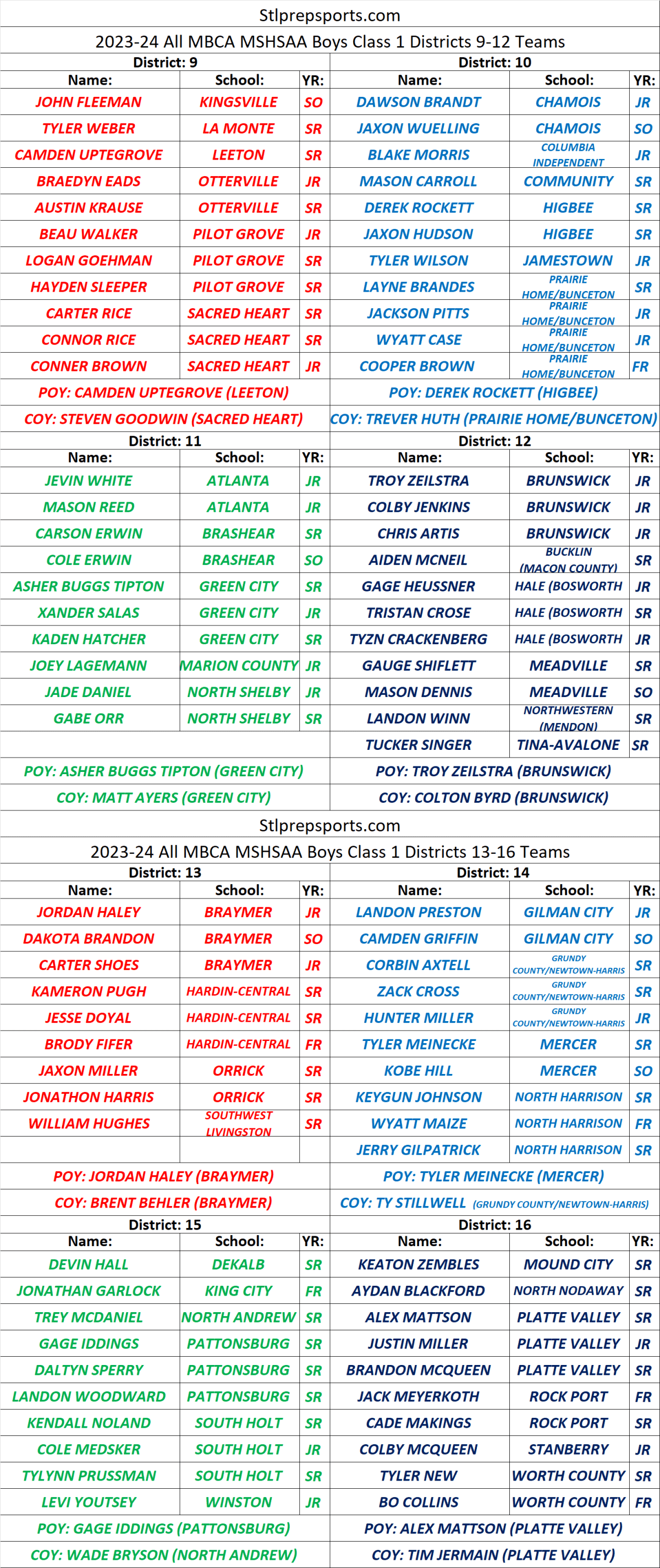 Stlprepsports.com 2023-24 MBCA Boys Basketball Class 1 All District Teams 9-16 Share this: Click to share on X (Opens in new window) X Click to share on Facebook (Opens in new window) Facebook Like Loading...