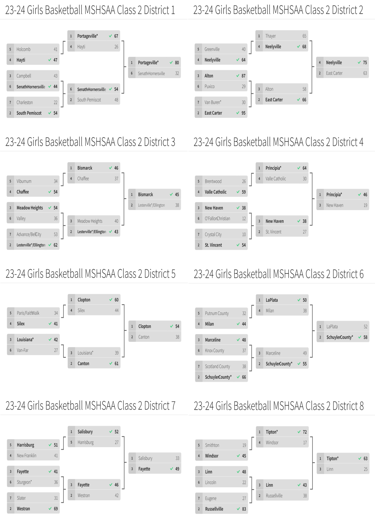 Stlprepsports.com 2023-24 MSHSAA Girls Class 2 Districts 1-8 Final Share this: Click to share on X (Opens in new window) X Click to share on Facebook (Opens in new window) Facebook Like Loading...