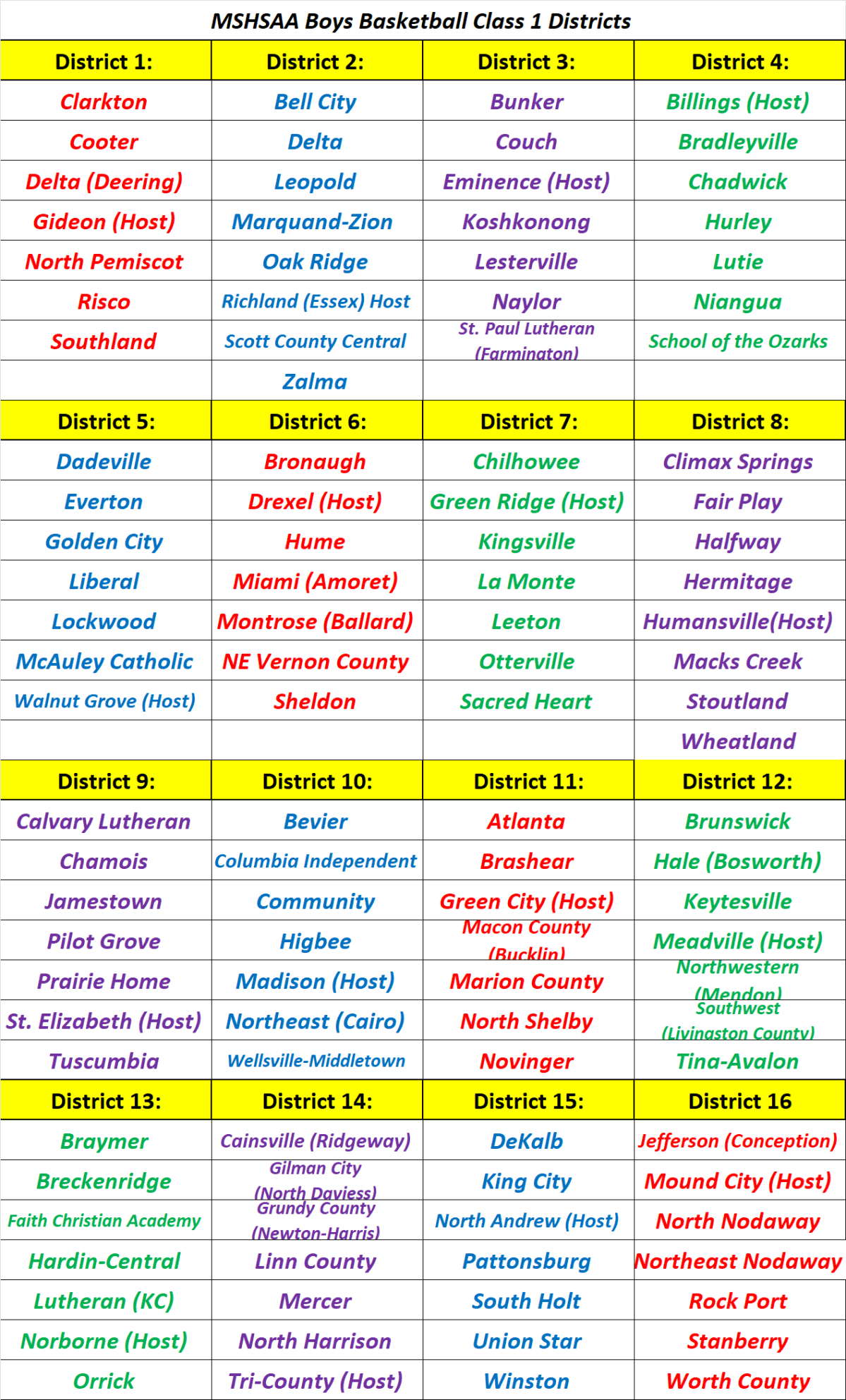 Stlprepsports.com 2024-25 MSHSAA Boys Basketball Class 1 Districts Share this: Click to share on X (Opens in new window) X Click to share on Facebook (Opens in new window) Facebook Like Loading...