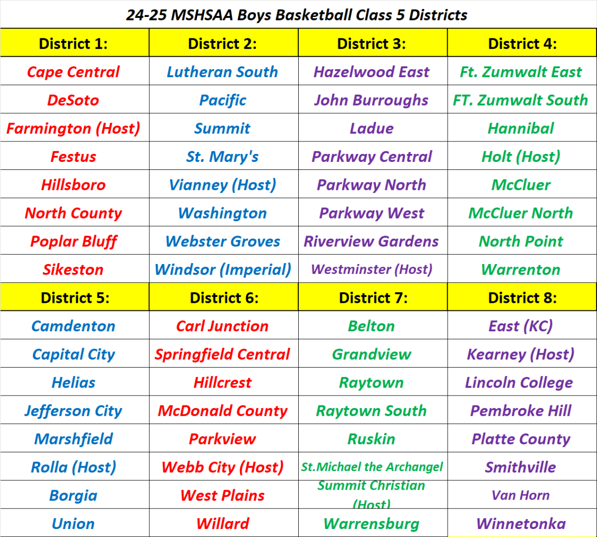 Stlprepsports.com 2024-25 MSHSAA Boys Basketball Class 5 Districts Share this: Click to share on X (Opens in new window) X Click to share on Facebook (Opens in new window) Facebook Like Loading...