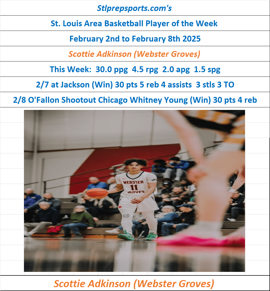 Stlprepsports.com’s St. Louis Metro Area High School Basketball Player of the Week of February 2nd to February 8th 2025 Share this: Click to share on X (Opens in new window) X Click to share on Facebook (Opens in new window) Facebook Like Loading...