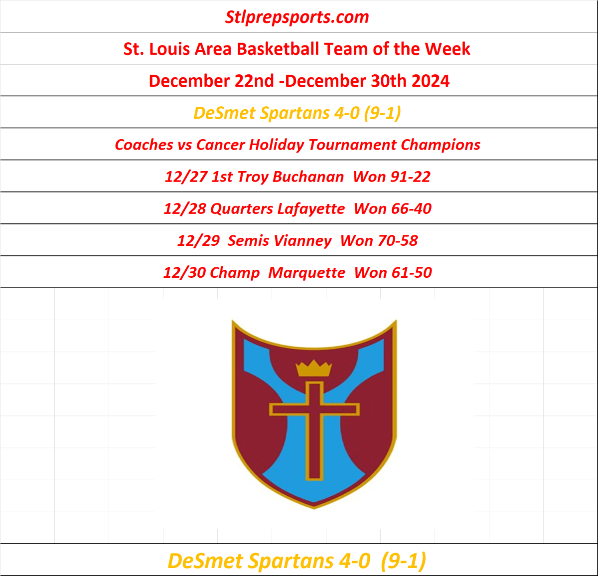 Stlprepsports.com’s St. Louis Metro Area High School Basketball team of the week of December 22nd to December 30th 2024 Share this: Click to share on X (Opens in new window) X Click to share on Facebook (Opens in new window) Facebook Like Loading...
