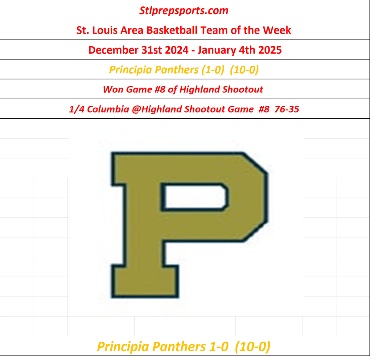 Stlprepsports.com’s St. Louis Metro Area High School Basketball team of the week of December 31st 2024 to January 4th 2025 Share this: Click to share on X (Opens in new window) X Click to share on Facebook (Opens in new window) Facebook Like Loading...