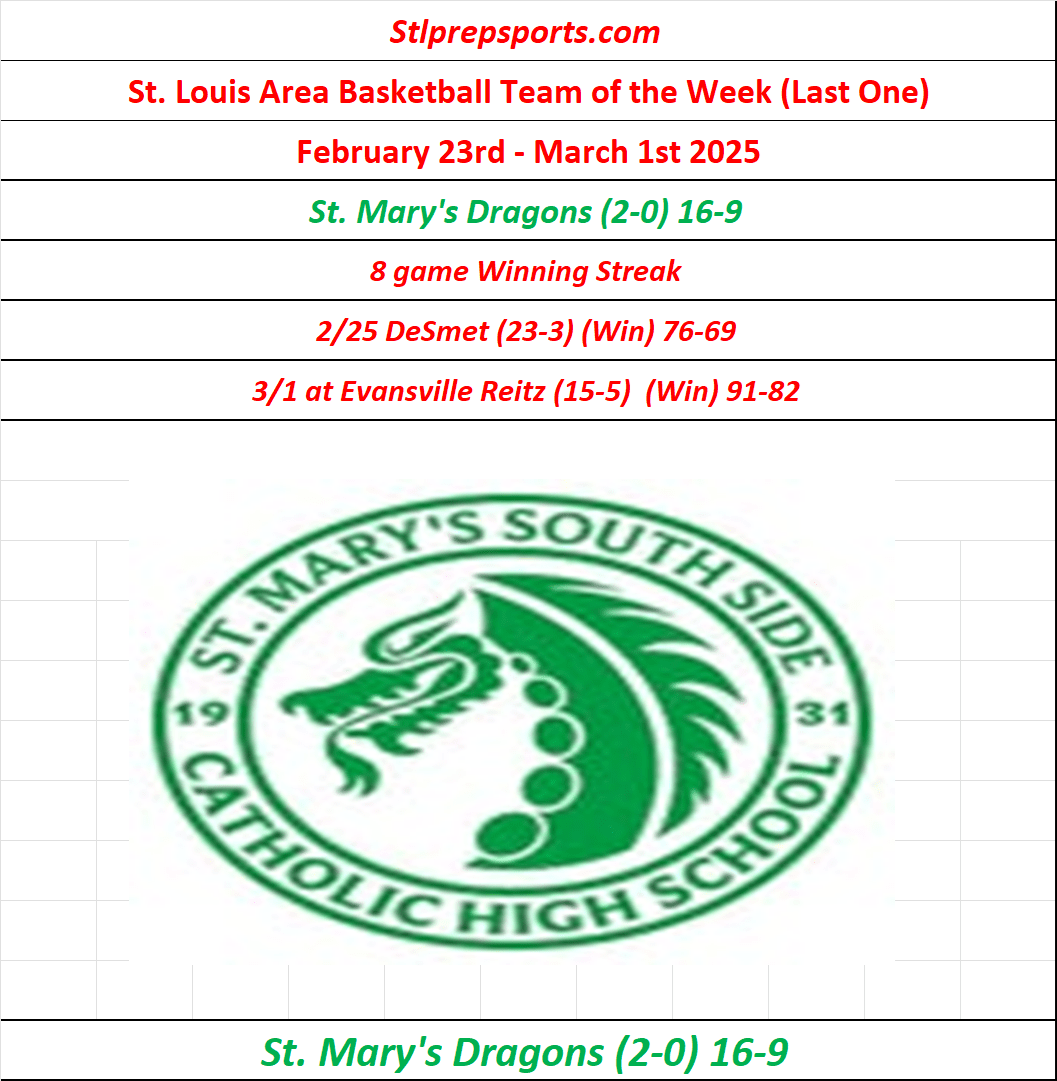 Stlprepsports.com’s St. Louis Metro Area High School Basketball Team of the Week of February 23rd to March 1st 2025 (Last one of the Year) Share this: Click to share on X (Opens in new window) X Click to share on Facebook (Opens in new window) Facebook Like Loading...