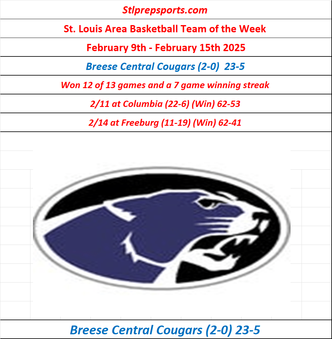 Stlprepsports.com’s St. Louis Metro Area High School Basketball team of the Week of February 9th to February 15th 2025 Share this: Click to share on X (Opens in new window) X Click to share on Facebook (Opens in new window) Facebook Like Loading...