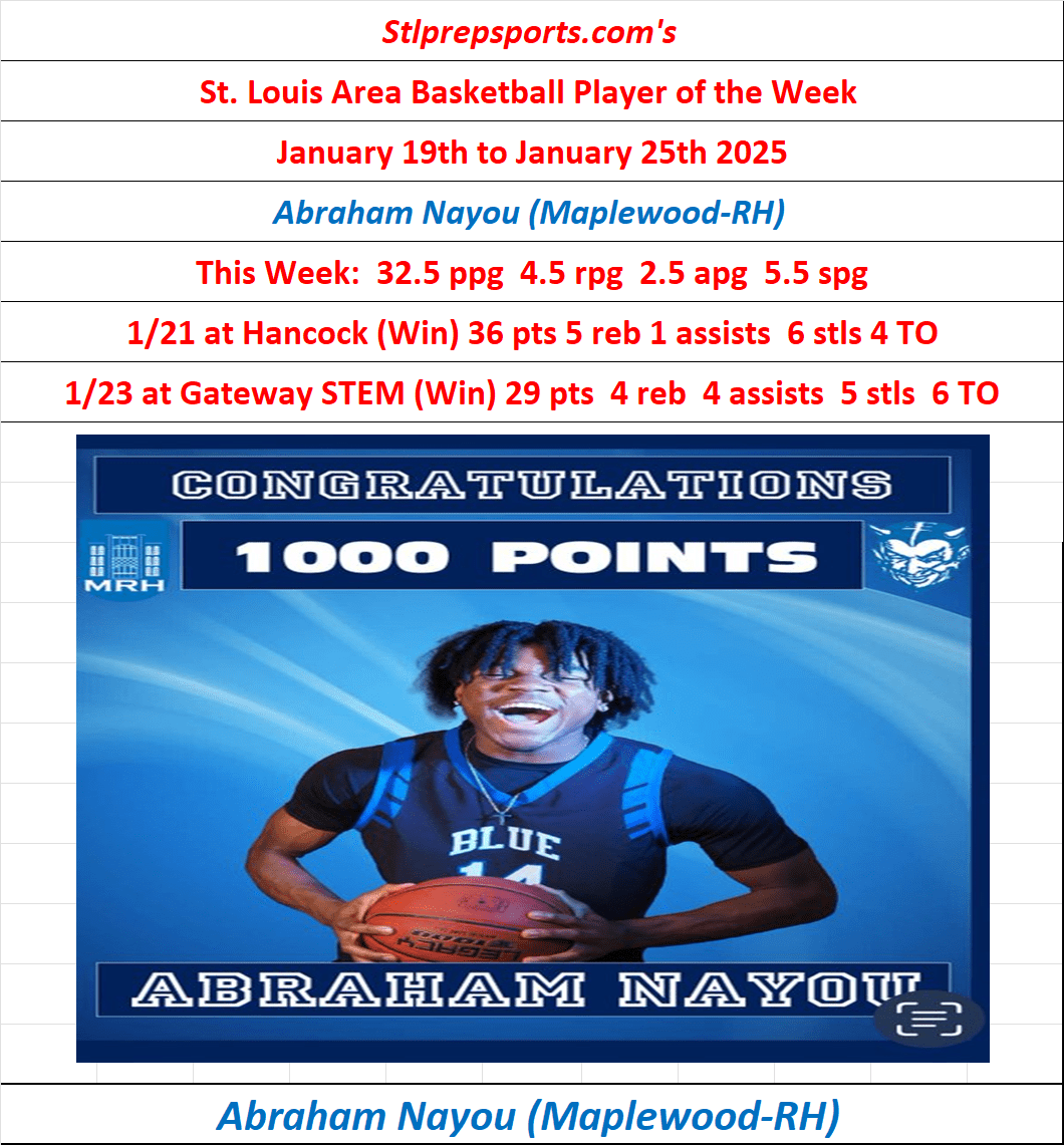 Stlprepsports.com’s St. Louis Metro Area High School Player of the Week of January 19th to January 25th 2025 Share this: Click to share on X (Opens in new window) X Click to share on Facebook (Opens in new window) Facebook Like Loading...
