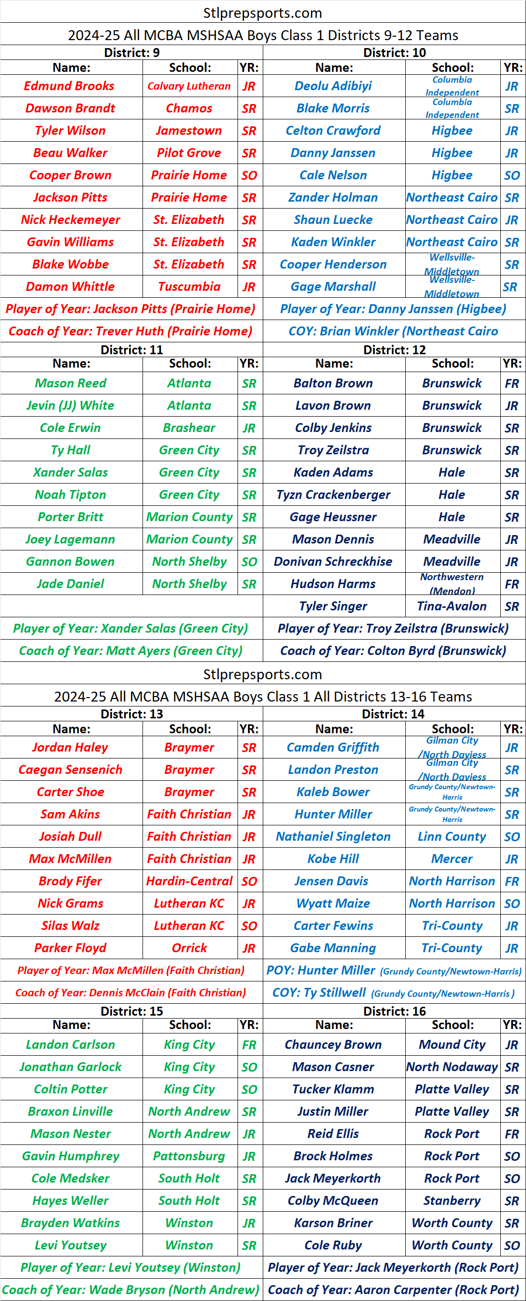 Stlprepsports.com: MBCA Boys Basketball Class 1 All District Teams 9-16 Share this: Click to share on X (Opens in new window) X Click to share on Facebook (Opens in new window) Facebook Like Loading...