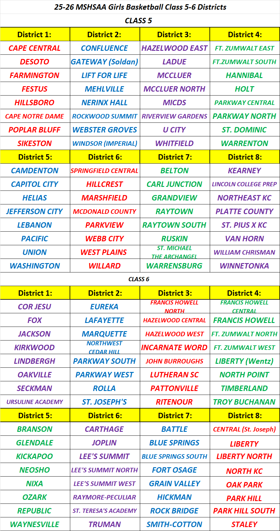 Stlprepsports.com 2025-26 MSHSAA Girls Basketball Class 5-6 Districts Share this: Click to share on X (Opens in new window) X Click to share on Facebook (Opens in new window) Facebook Like Loading...