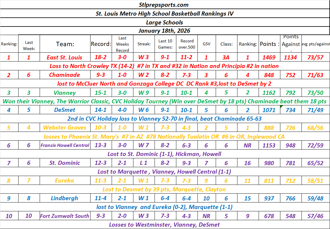 Stlprepsports.com’s 25-26 St. Louis Metro High School Basketball Rankings IV (Large Schools) 01/18/26 Share this: Share on X (Opens in new window) X Share on Facebook (Opens in new window) Facebook Like Loading...