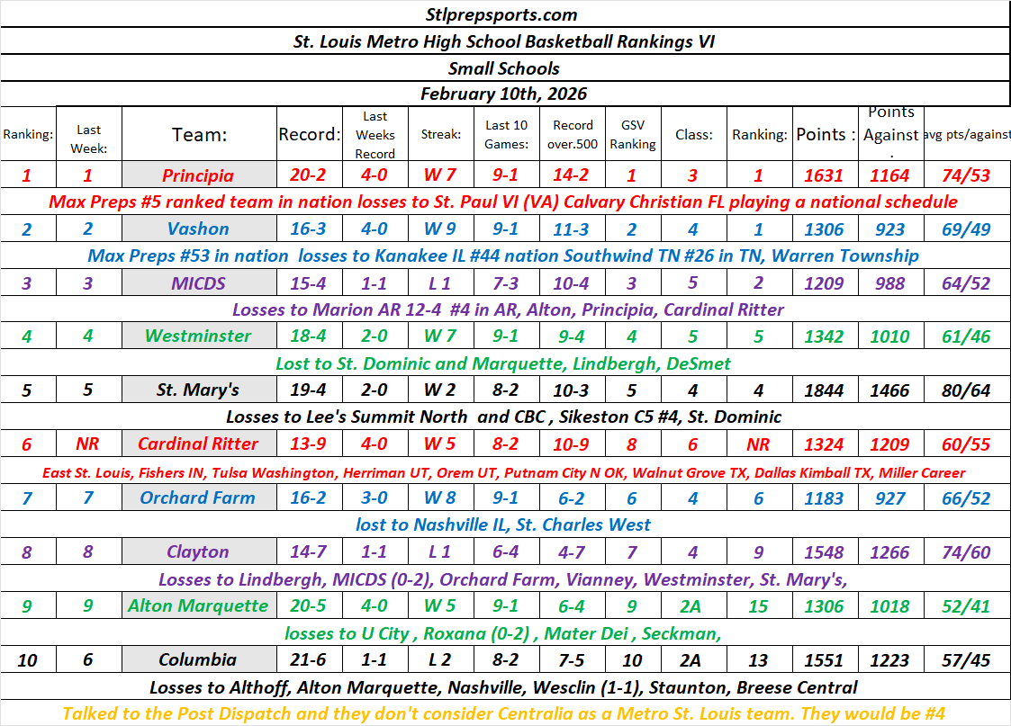 Stlprepsports.com’s 25-26 St. Louis Metro High School Basketball Rankings VI (Small Schools) 02/10/26 Share this: Share on X (Opens in new window) X Share on Facebook (Opens in new window) Facebook Like Loading...