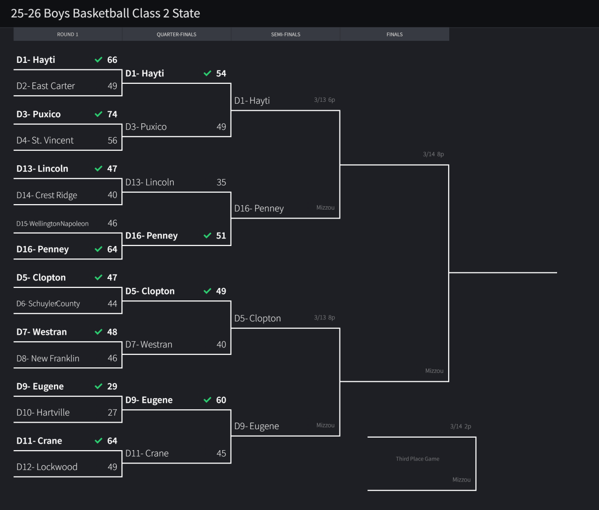 Stlprepsports.com 2025-26 MSHSAA Boys Basketball Class 2 State Finals (Semifinals) Share this: Share on X (Opens in new window) X Share on Facebook (Opens in new window) Facebook Like Loading...