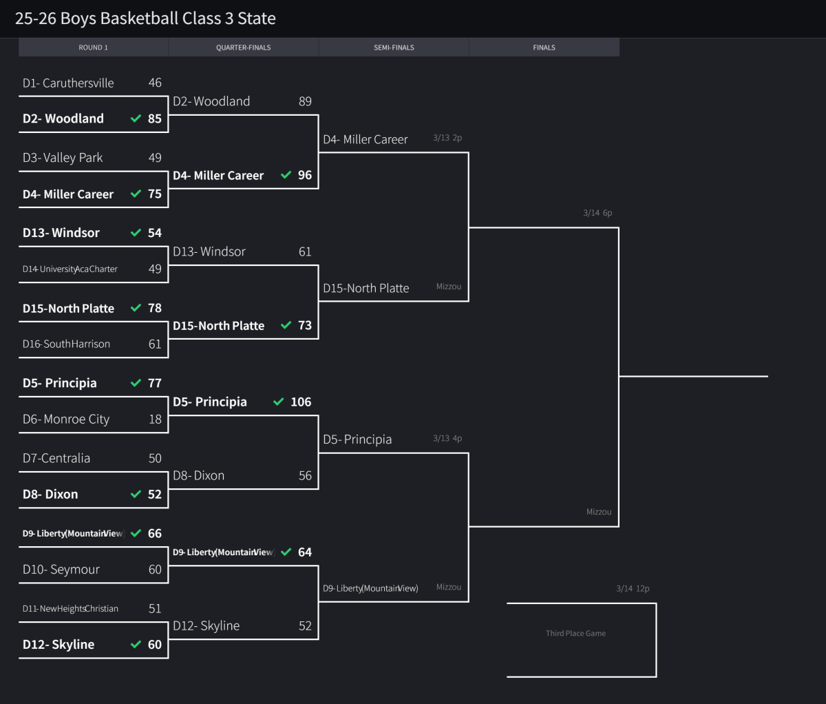 Stlprepsports.com 2025-26 MSHSAA Boys Basketball Class 3 State Finals (Semifinals) Share this: Share on X (Opens in new window) X Share on Facebook (Opens in new window) Facebook Like Loading...